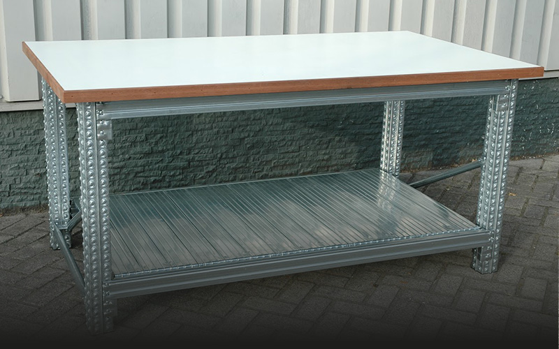 Verrijdbare werktafel verzinkt L2000xD900xH900 28mm MDF werkblad incl. extra legbord