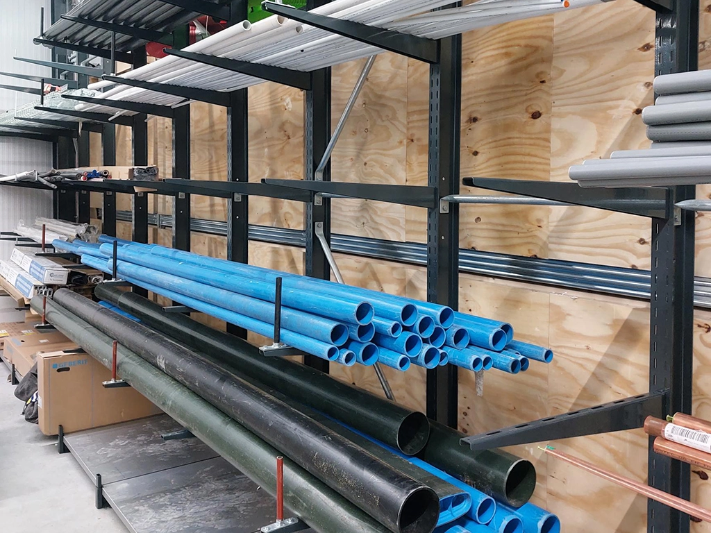 Lichte draagarmstellingen zijn ideaal voor het opslaan van lange, lichte goederen zoals pvc-buizen, houten latten, kunststofprofielen en lichte metalen.