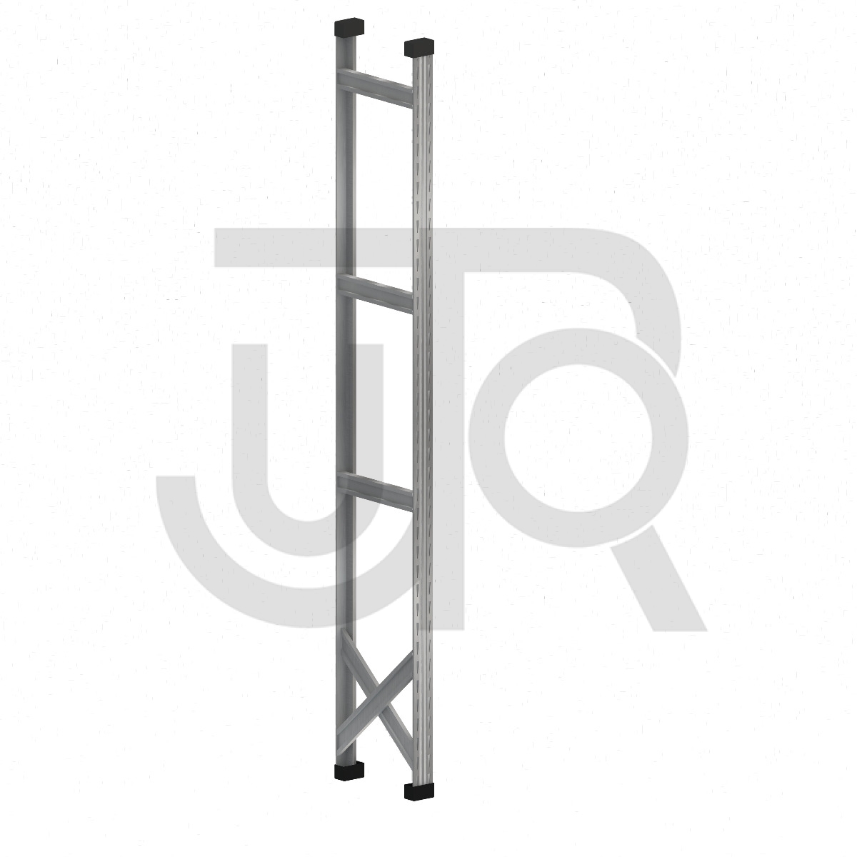 Complete staander Metalsistem 1972X320 mm type S1. Bestaande uit 2 stijlen, schoren en 4 top- en voetdoppen.