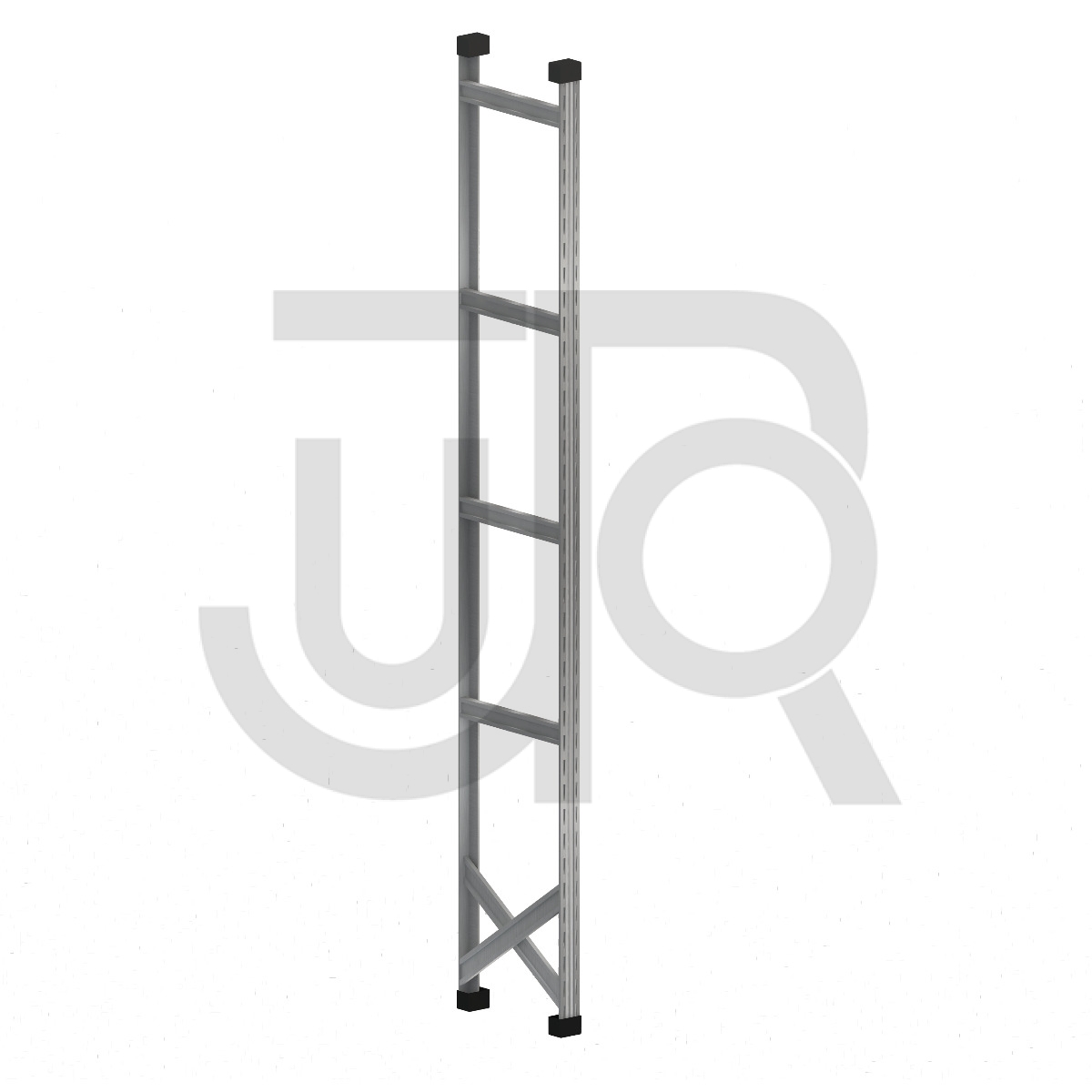 Complete staander Metalsistem 2500X400 mm type S1. Bestaande uit 2 stijlen, schoren en 4 top- en voetdoppen.