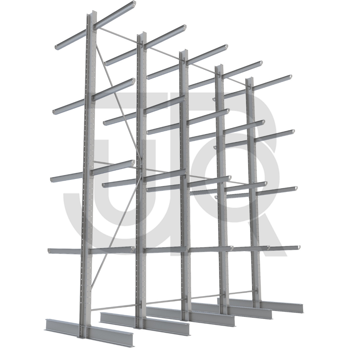 Dubbelzijdige draagarmstelling H4500 mm, 4 niveaus arm 1000 mm| voordeelrij