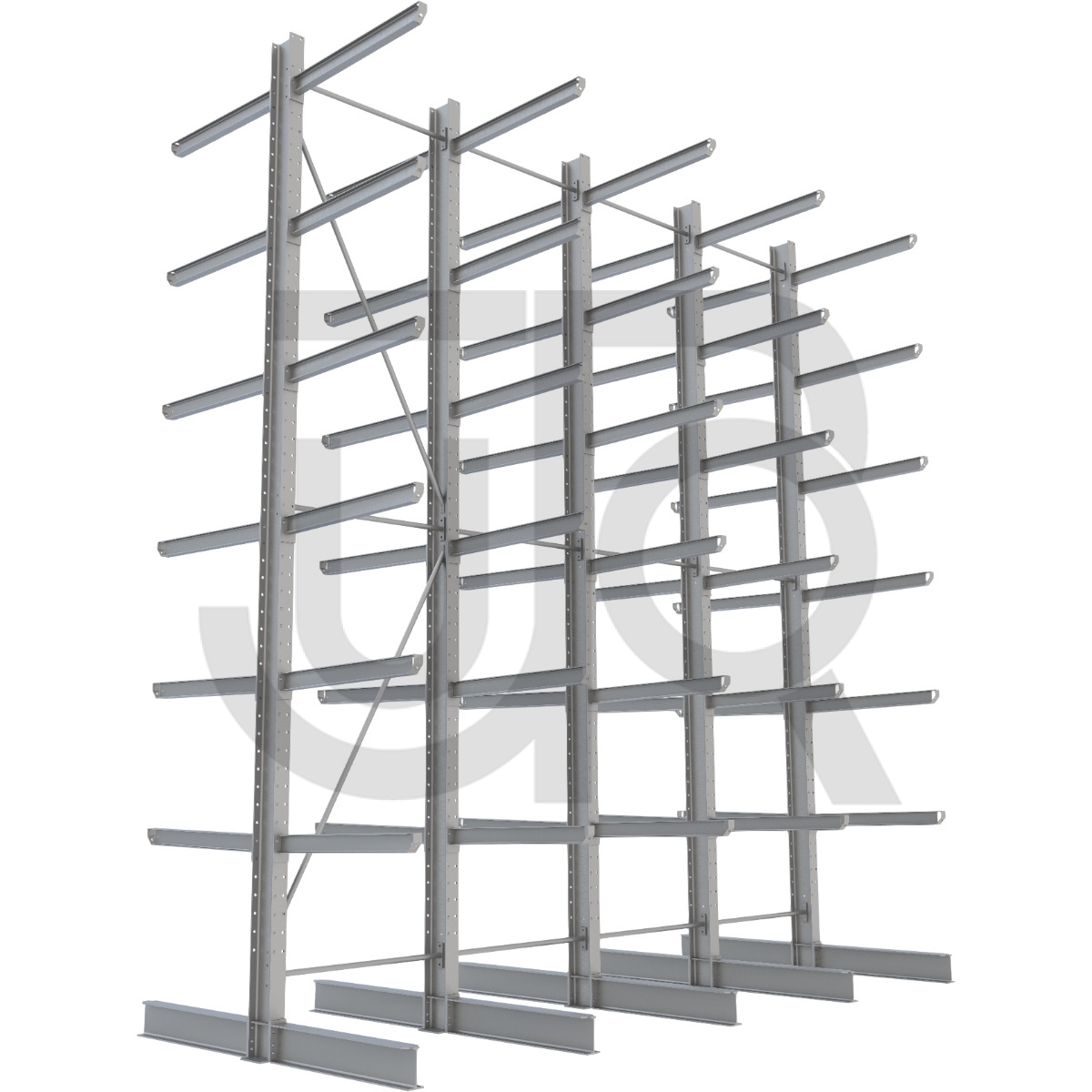 Onze geboute zware draagarmstellingen worden vervaardigd uit warmgewalste IPE profielen met staalkwaliteit S235. Schoringen wordt vervaardigd uit Sendzimir buismateriaal. Ze hebben een minimale ontwerplevensduur van 15 jaar. Staanders en armen zijn voorzien van een thermisch verzinkte toplaag voor gebruik zowel binnen als buiten.