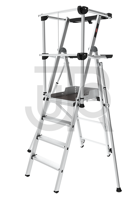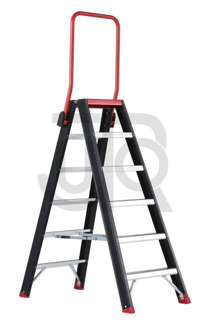 De Falco is gemaakt voor intensief gebruik. Dubbel oploopbaar dus aan beide zijden te gebruiken. De robuust vormgegeven trap is ideaal voor elke professionele klus. Het unieke scharniersysteem van het bordes maakt de trap opvallend veilig in gebruik.