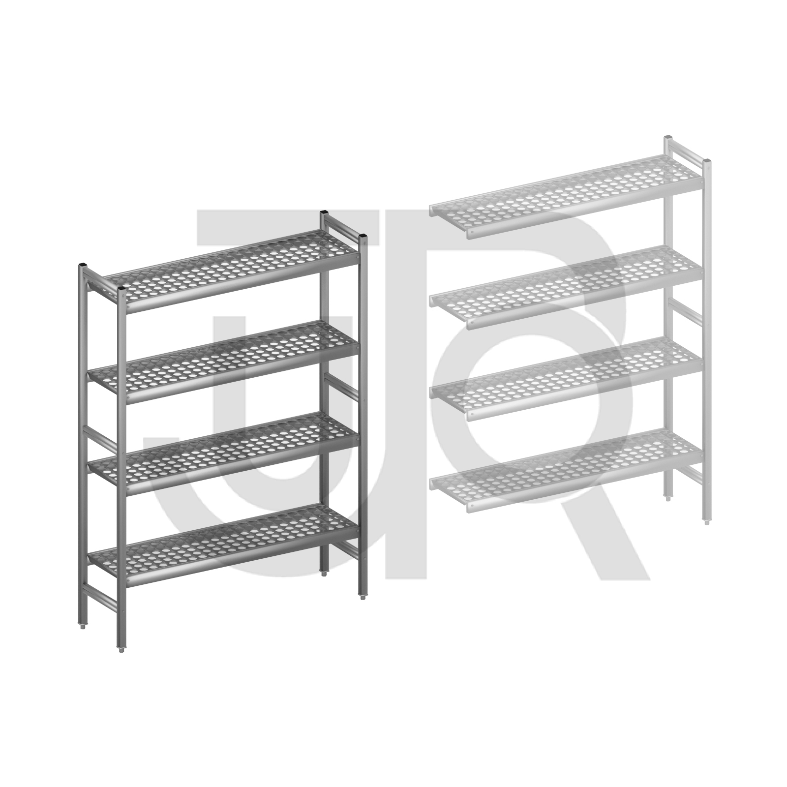 Bestaande uit   2 staanders en 4 etage’s; voorzien van uitneembare kunststof legborden