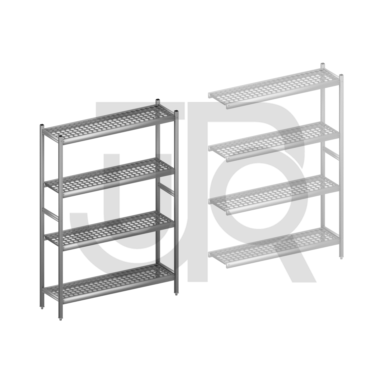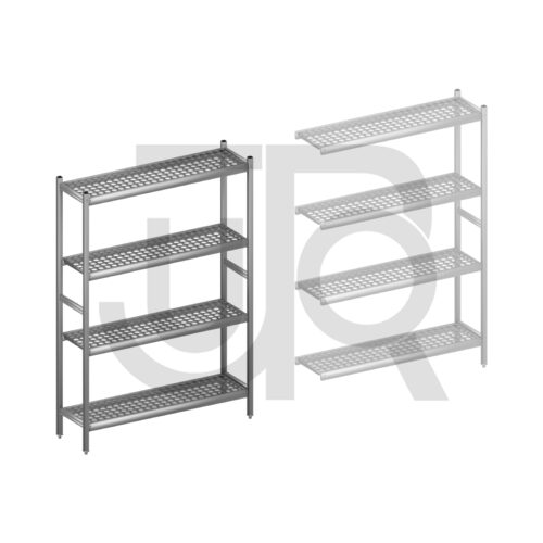 Bestaande uit : 2 staanders en 4 etage’s; voorzien van uitneembare kunststof legborden