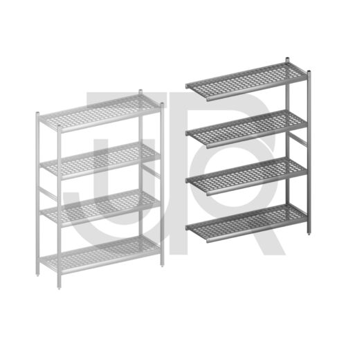 Deze geanodiseerd aluminium rekwerken van Fermostock hebben in hoogte verstelbare liggers en zijn voorzien van uitneembare grijze kunststof legborden, welke eenvoudig in elke vaatwasmachine kunnen worden gereinigd. Het rekwerk heeft een hoog draag vermogen ! Het is HACCP-proof en mogelijk het beste rekwerk wat momenteel op de markt verkrijgbaar is. Het voldoet aan de strengste eisen qua duurzaamheid en stevigheid en voldoet aan alle normen omtrent hygiëne en reinigingsvoorwaarden (NF031). Dankzij de afgeronde hoeken en vlakke oppervlakken genieten FERMOSTOCK rekwerken zelfs het zwaarste keurmerk: het NF-voedselhygiëne-label afgeleverd door AFAQ-AFNOR CERTIFICATION op 01/10/1993 (testlabo Cnerpac ; n° 06-A-644/645). Daarnaast zijn de rekwerken van FERMOSTOCK ook nog eens zeer aantrekkelijk geprijsd.