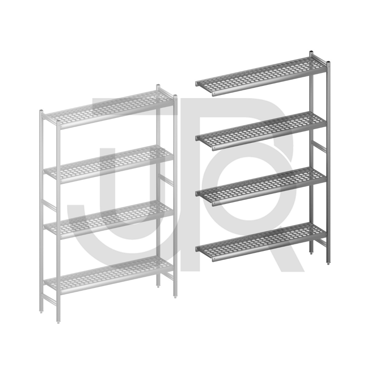 Bestaande uit : 1 staander en 4 etage’s; voorzien van uitneembare kunststof legborden