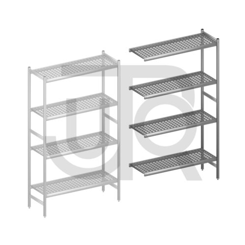Deze geanodiseerd aluminium rekwerken van Fermostock hebben in hoogte verstelbare liggers en zijn voorzien van uitneembare grijze kunststof legborden, welke eenvoudig in elke vaatwasmachine kunnen worden gereinigd. Het rekwerk heeft een hoog draag vermogen ! Het is HACCP-proof en mogelijk het beste rekwerk wat momenteel op de markt verkrijgbaar is. Het voldoet aan de strengste eisen qua duurzaamheid en stevigheid en voldoet aan alle normen omtrent hygiëne en reinigingsvoorwaarden (NF031). Dankzij de afgeronde hoeken en vlakke oppervlakken genieten FERMOSTOCK rekwerken zelfs het zwaarste keurmerk:  het NF-voedselhygiëne-label afgeleverd door AFAQ-AFNOR CERTIFICATION op 01/10/1993 (testlabo Cnerpac ; n° 06-A-644/645). Daarnaast zijn de rekwerken van FERMOSTOCK ook nog eens zeer aantrekkelijk geprijsd.