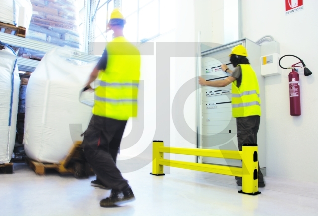 Bescherming dubbele barrière voor magazijnstelling, lengte 6000 mm. Ideaal voor gebieden met weinig verkeer. Bevestigingsaccessoires inbegrepen.