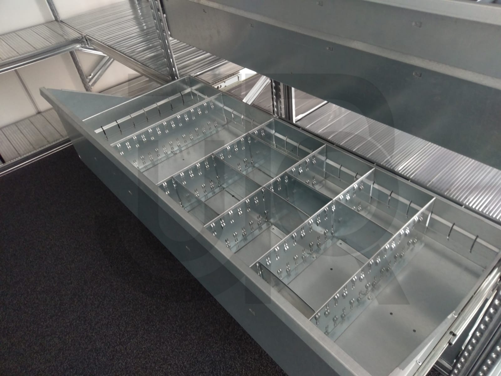De hoogte van de lade is 165 mm. Vrij in te delen met onderstaande verdeelschotten.