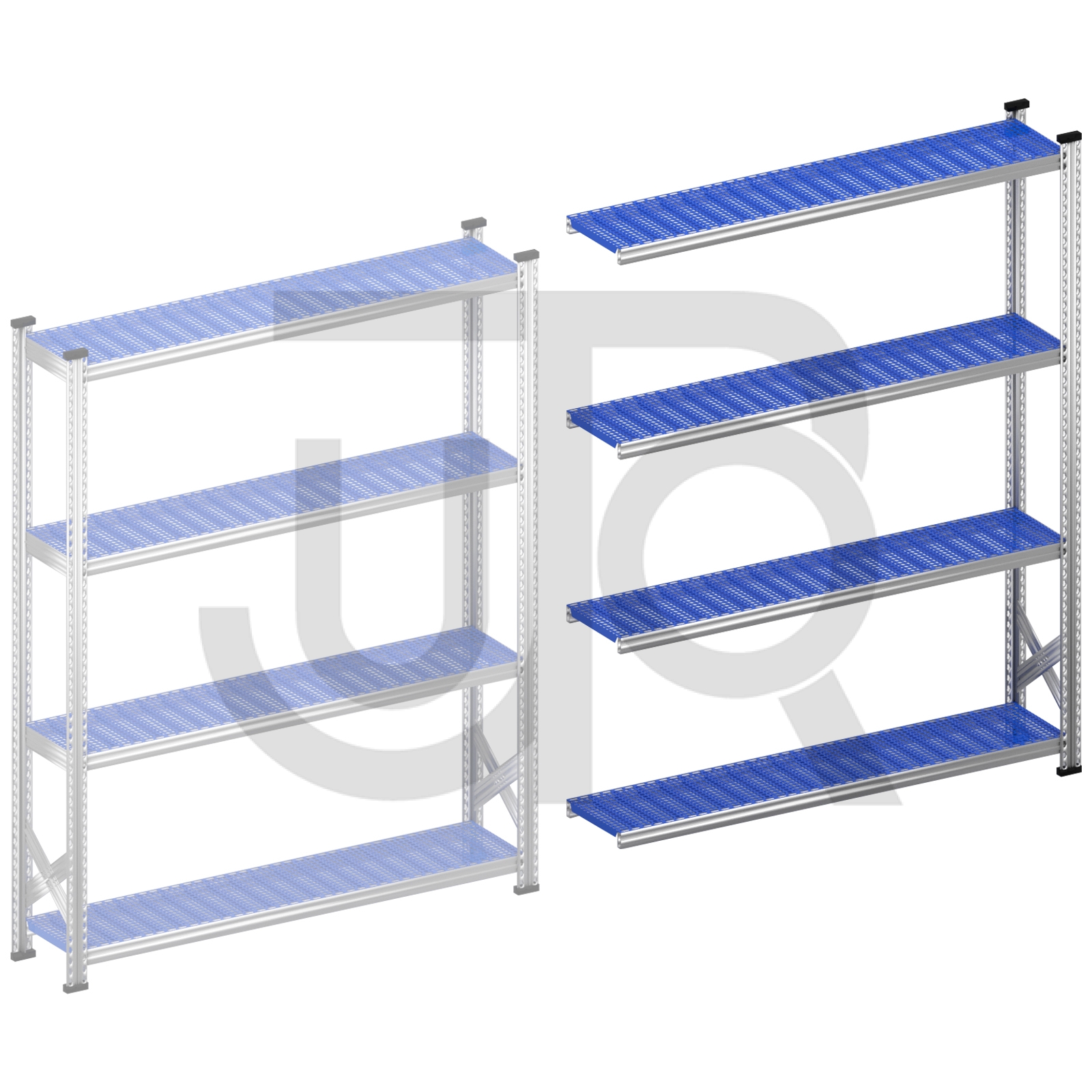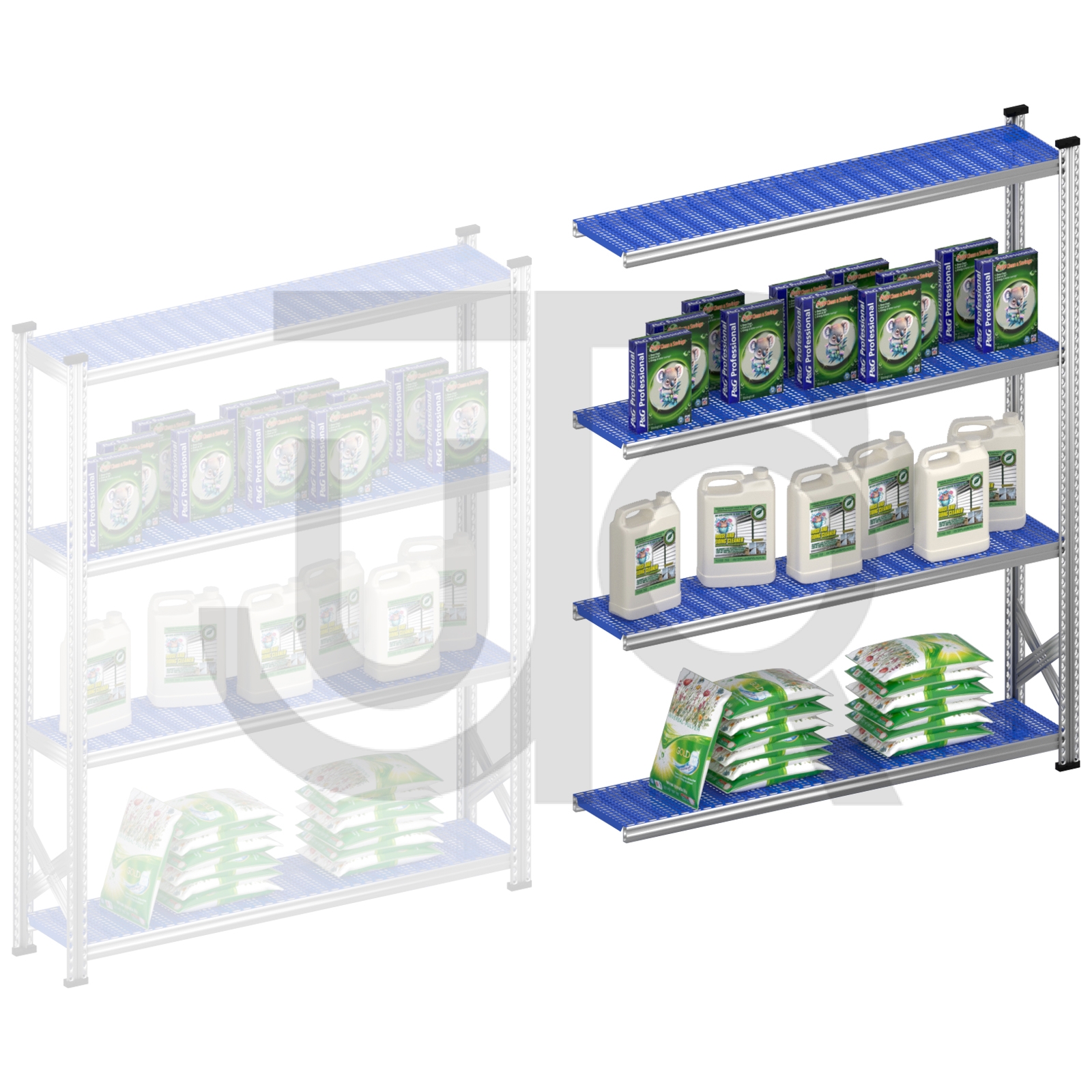 - 4x compleet blauw kunststof legbord 1500 x 320 mm (B x D)