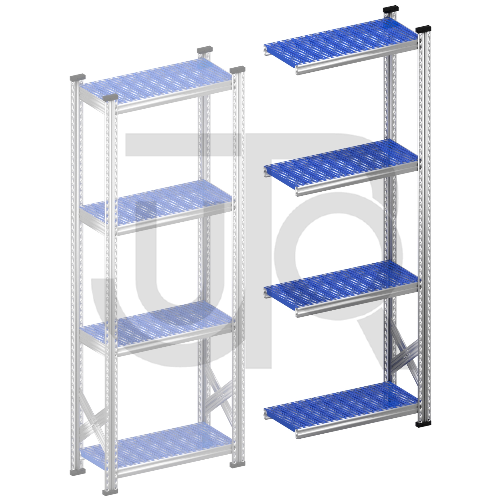 • 4x compleet blauw kunststof legbord 600 x 320 mm (B x D)