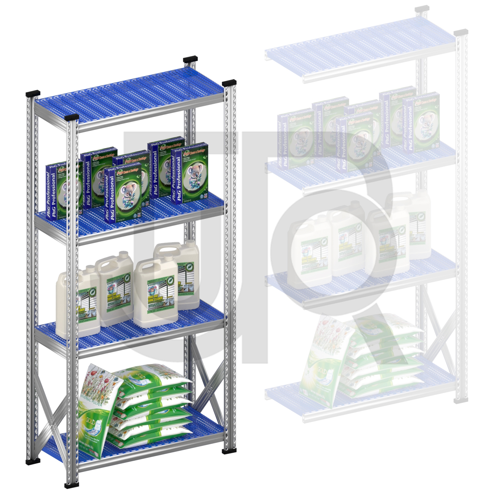 Legbordstelling H1972 x D400 | blauwe kunststof legborden | startset vak 900 mm