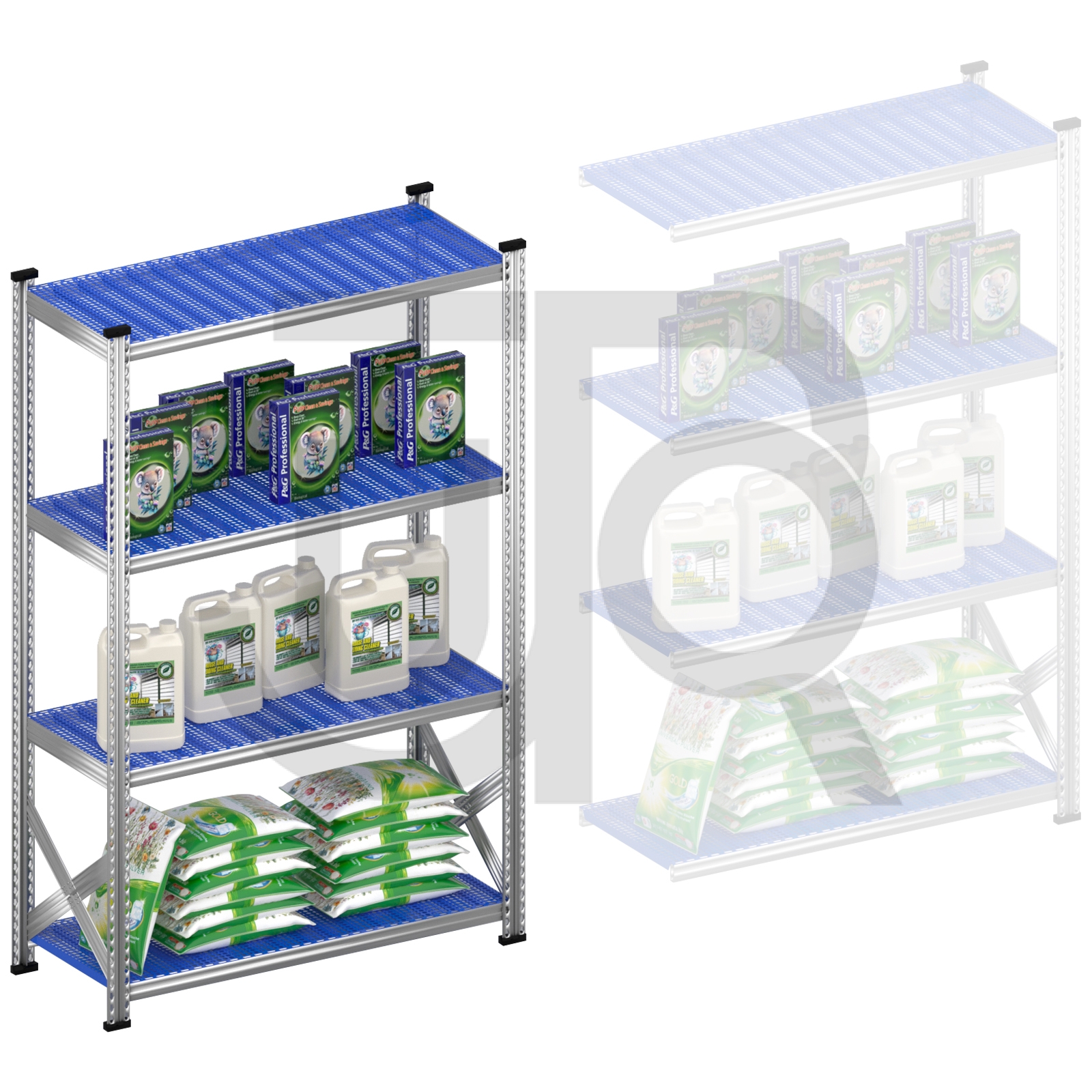 Legbordstelling H1972 x D500 | blauwe kunststof legborden | startset vak 1200 mm