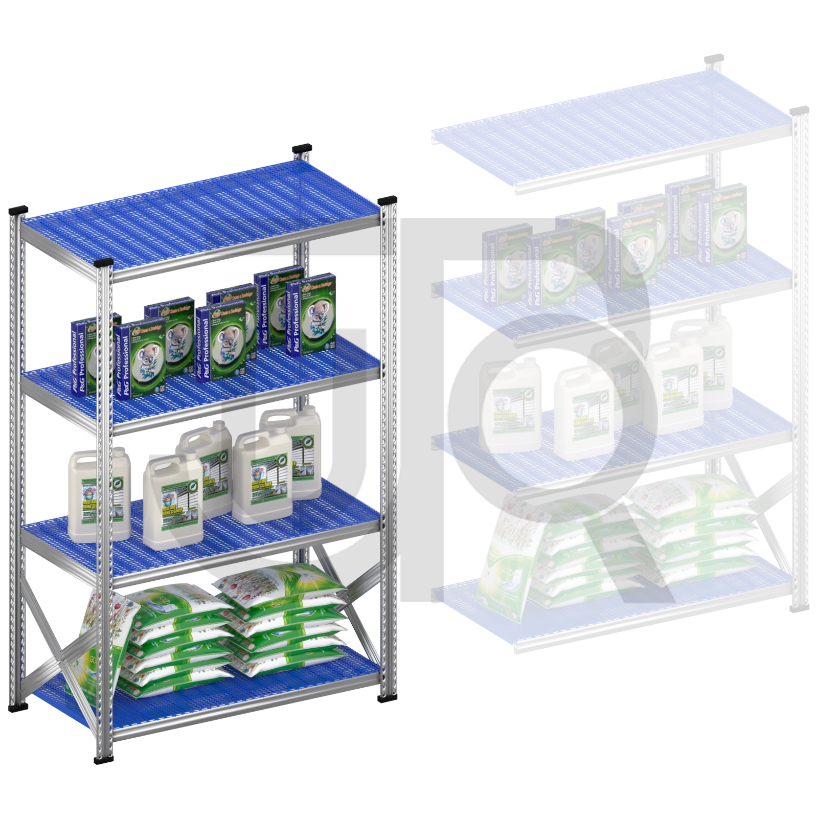 - 4x compleet blauw kunststof legbord 1200 x 600 mm (B x D)