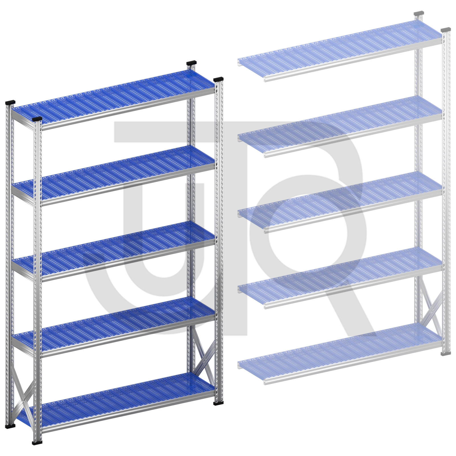 Legbordstelling H2500 x D400 | blauwe kunststof legborden | startset vak 1500 mm
