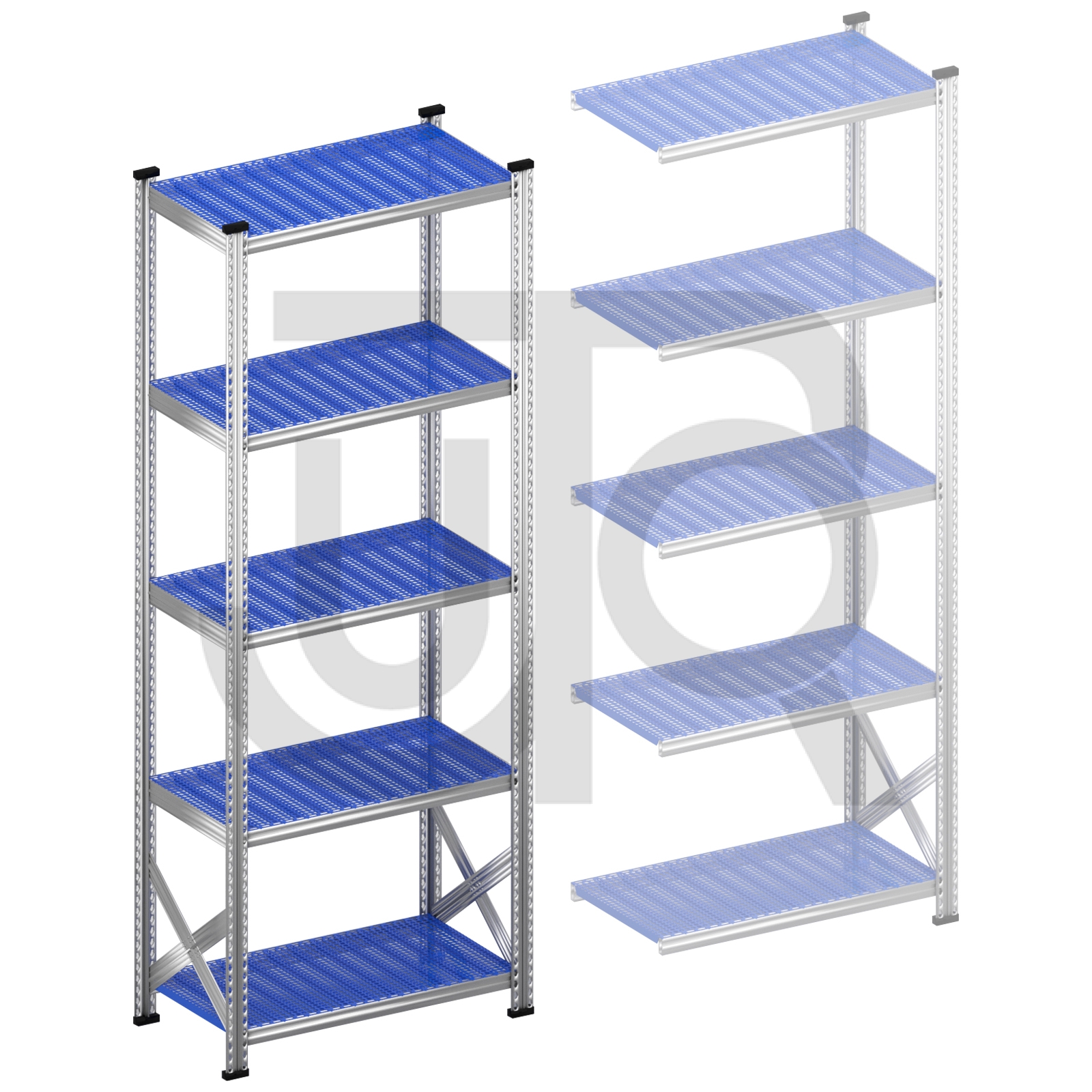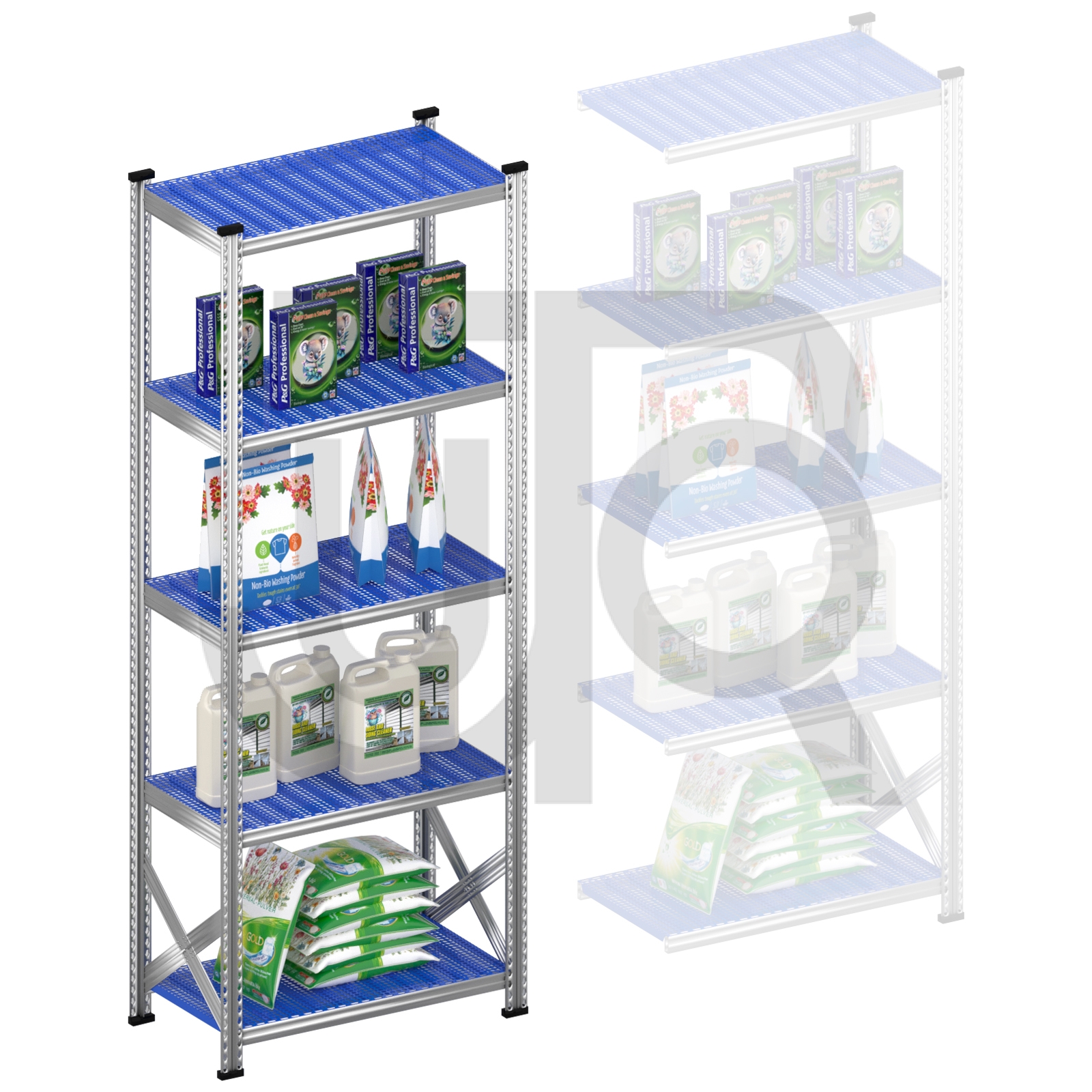 Legbordstelling H2500 x D500 | blauwe kunststof legborden | startset vak 1050 mm
