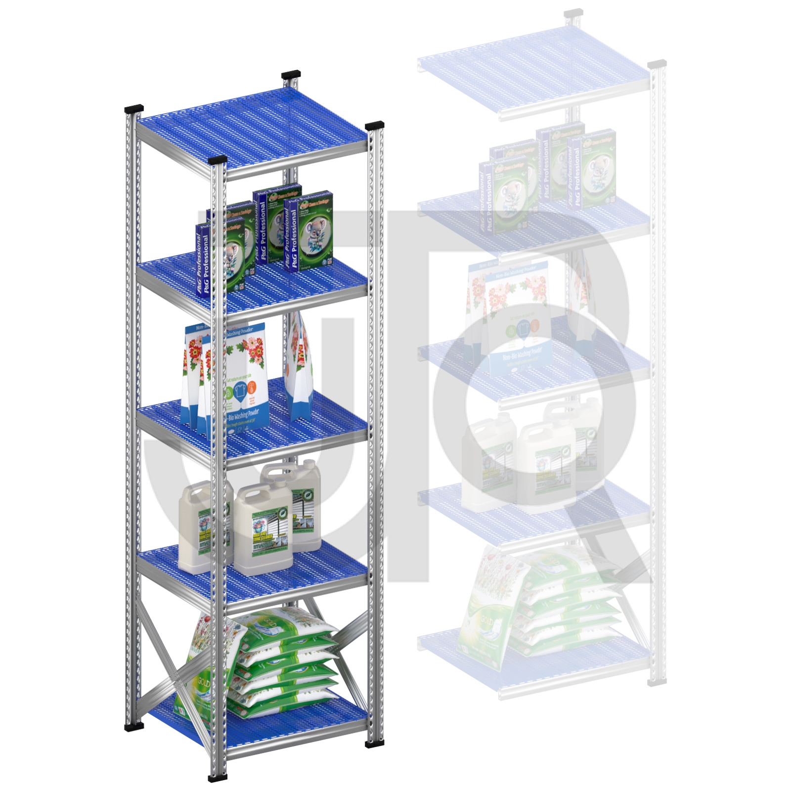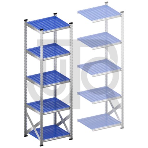 Legbordstelling H2500 x D600 | blauwe kunststof legborden | startset vak 600 mm