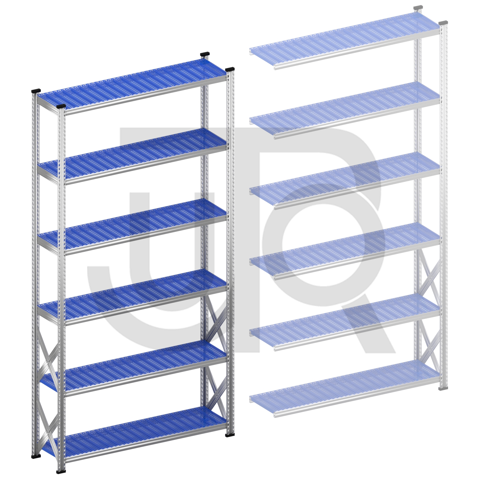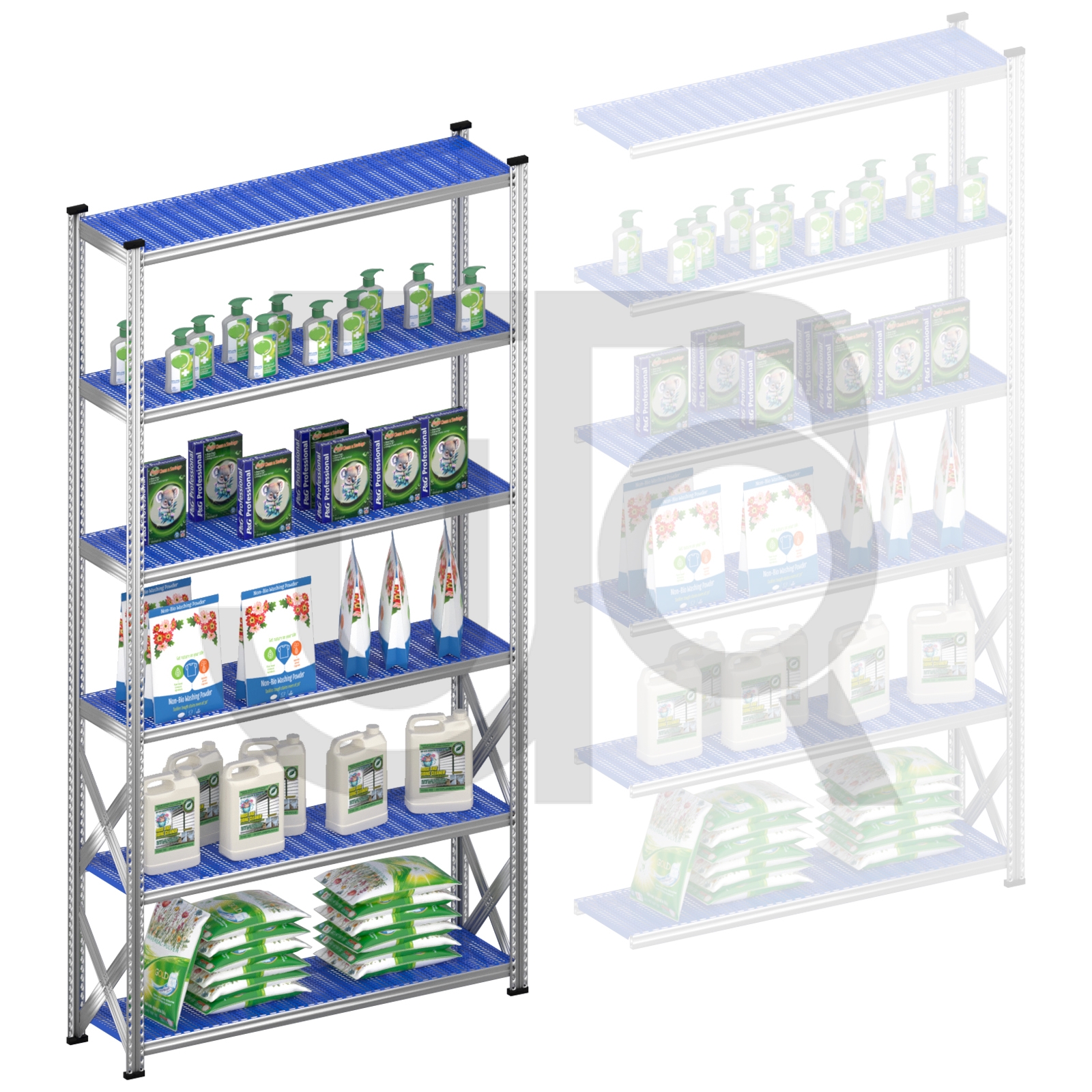 - 6x compleet blauw kunststof legbord 1500 x 400 mm (B x D)