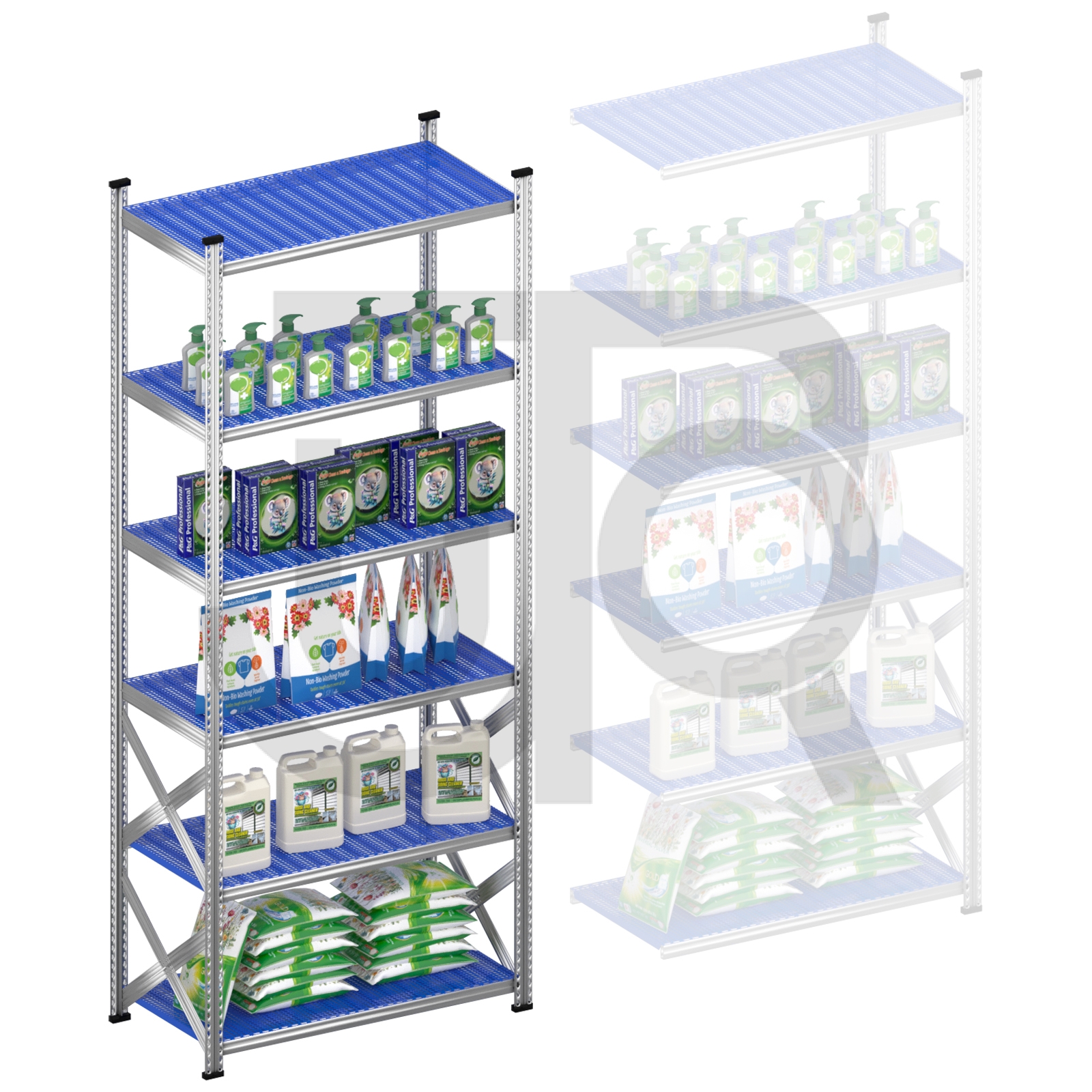 - 6x compleet blauw kunststof legbord 1200 x 600 mm (B x D)