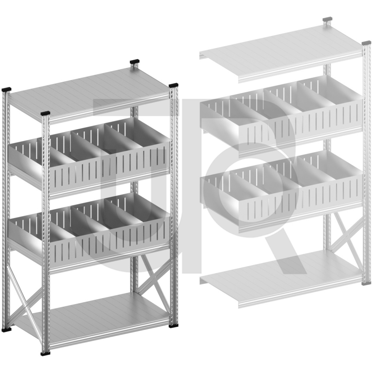 - 2x voorgemonteerde staander 1972 mm hoog, 500 mm diep