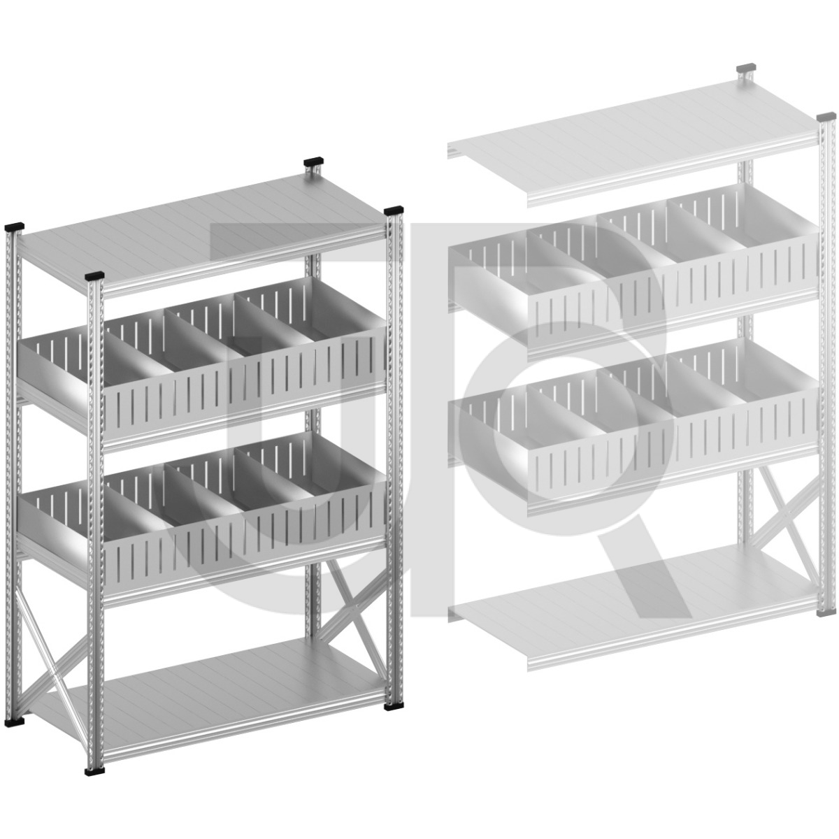 - 2x voorgemonteerde staander 1972 mm hoog, 600 mm diep