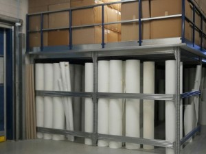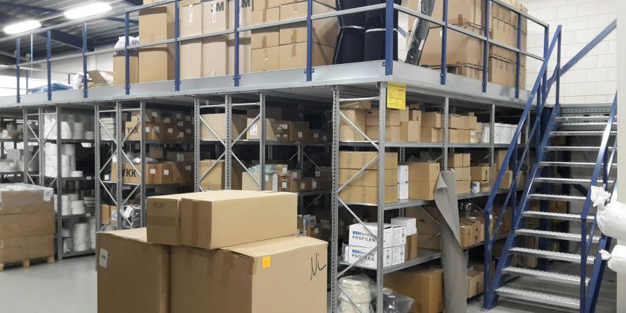 Voor Lampe Technical Textiles ontwikkelde Juro Unirek een gecombineerde oplossing bestaande uit Superbuild palletstellingen en drie typen entresolvloeren: een standaard entresolvloer, een vloer over legbordstelling en een vloer over palletstelling.