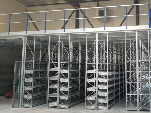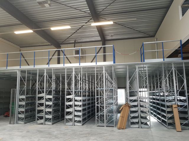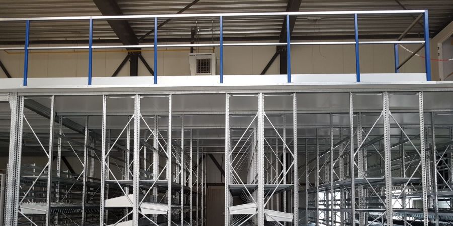 Een entresolvloer die direct rust op het stellingenframe